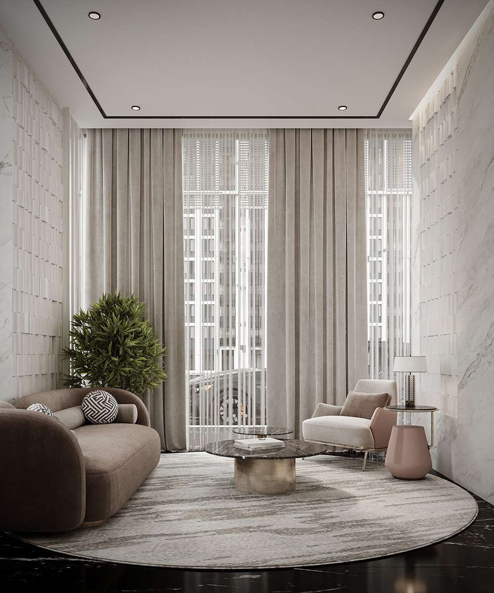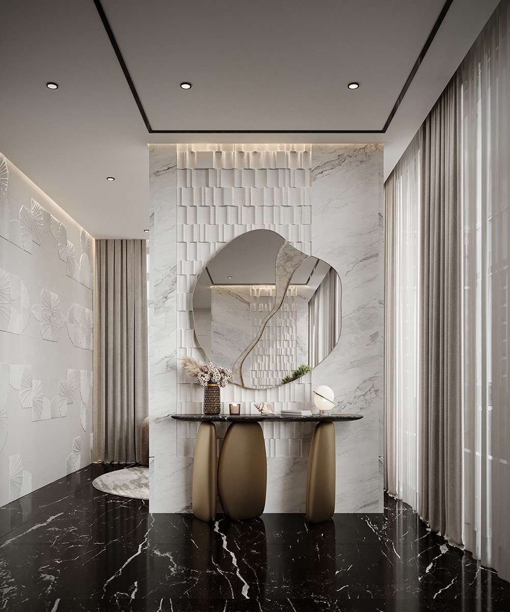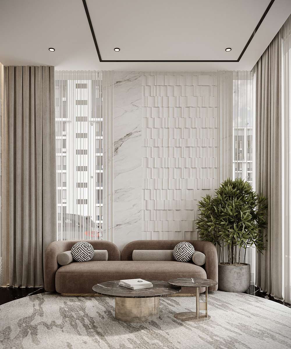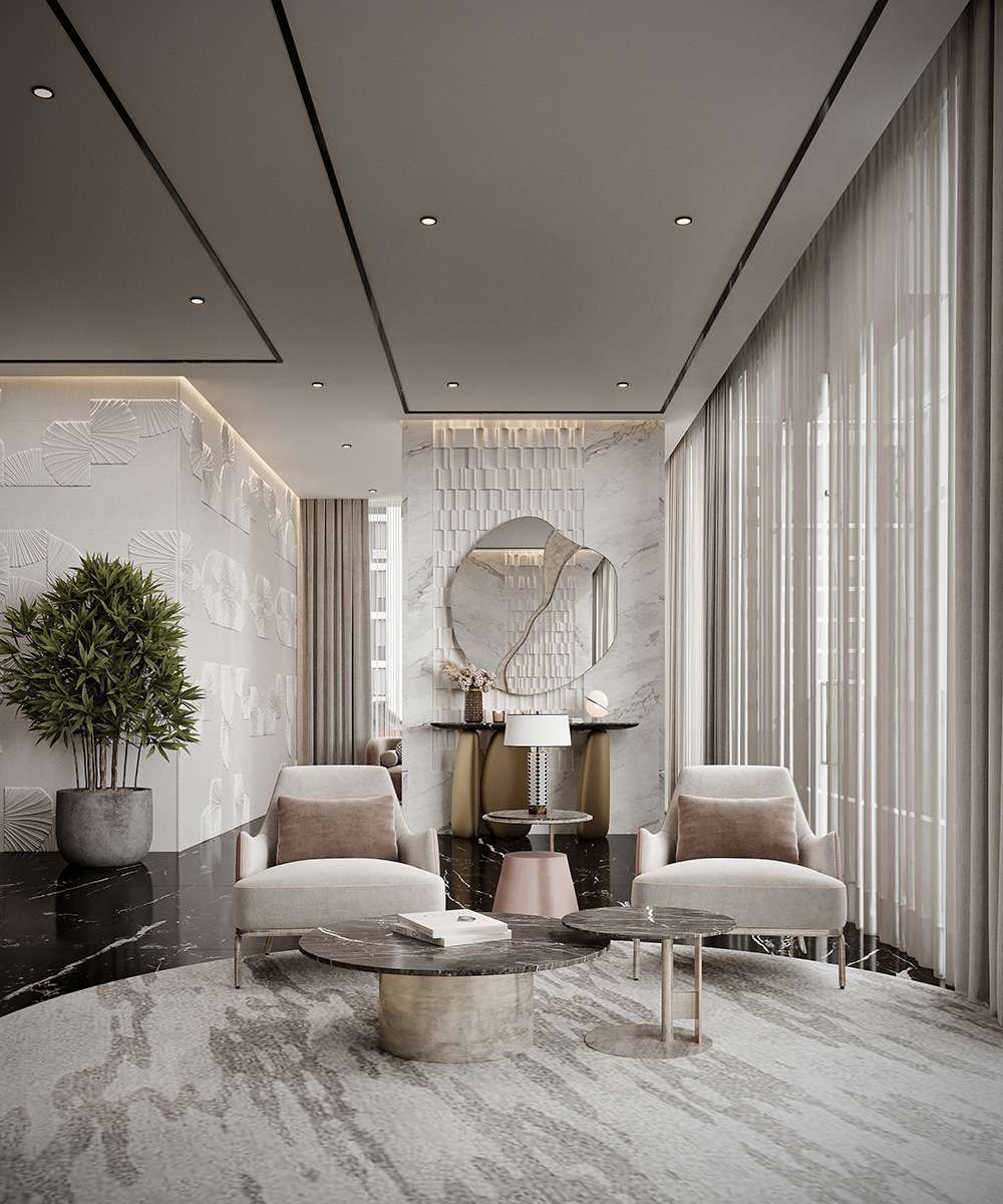 High-end marble, fine timber, subtle metallic accents, and premium upholstery curated for lasting quality and coherence.